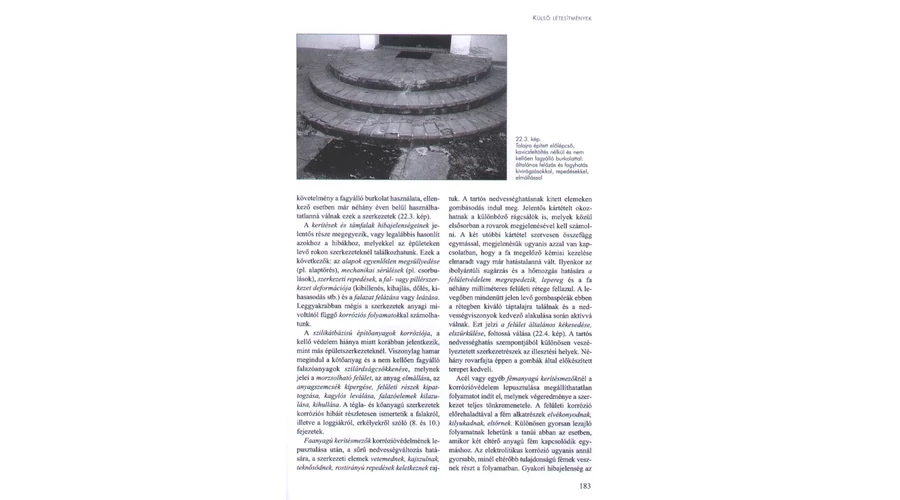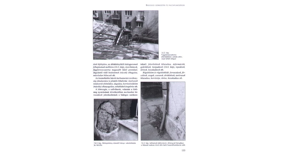 A tankönyv a tervezhető épületfenntartási tevékenység első és nélkülözhetetlen teendőjeként az épületszerkezetek diagnosztizálási módszereit rendszerbe foglalja. Ismerteti a takart szerkezetek felismerésének módját és fizikai avulásuk jelenségeit. Minden szerkezet vonatkozásában felsorolja azokat a vizsgálati módszereket, melyek segítségével megállapítható a károsodás mértéke. A leírtakat szemléletes fénykép és ábraanyag egészíti ki.